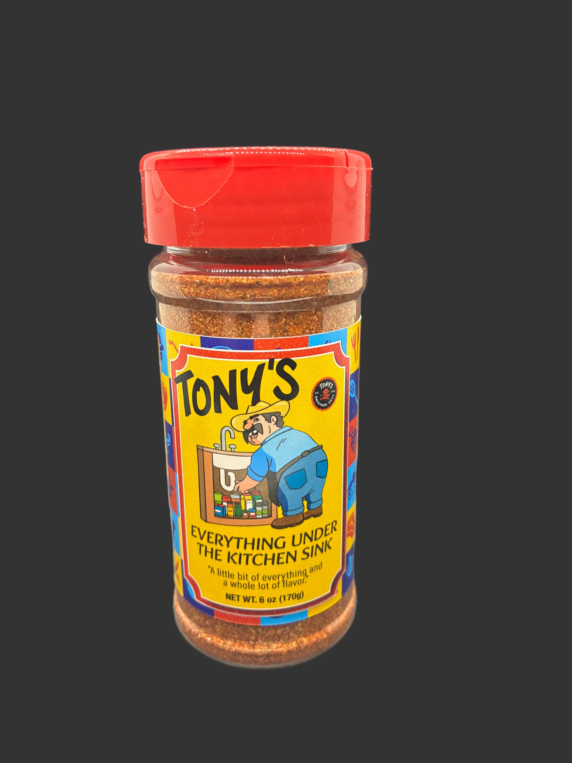 Everything Under the Kitchen Sink: Built from Tony’s original “One Spice,” this blend takes tradition up a notch. It’s smoky with just the right kick; bold enough for the grill, balanced enough for everyday cooking. From chicken and seafood to burgers, veggies, and beyond, it adds that perfect punch of flavor to anything you throw at it. When One Spice isn’t enough, reach for Everything Under the Kitchen Sink.